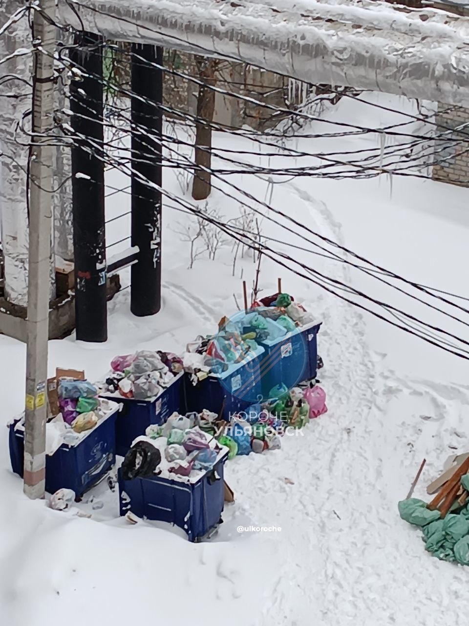 «Огромные сосульки висят прямо над головами людей, которые приходят выбрасывать мусор», — сообщают ульяновцы.