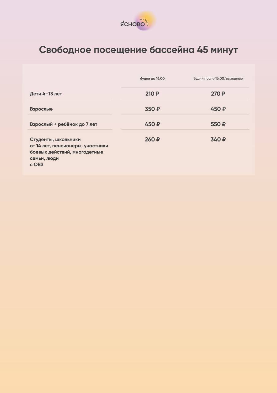 В ближайшее время в Юго-Западном микрорайоне в Засвияжье откроется новый бассейн. Сейчас идут завершающие приготовления: проверяется оборудование, настраивается система фильтрации, вода набирает нужную температуру. Точную дату открытия объявят в ближайшее время. 25-метровый бассейн с семью дорожками располагается в ФОКе «Ясново на спорте». В комплексе будут проводить тренировки, занятия аквааэробикой, групповое и индивидуальное обучение плаванию для взрослых и детей. Также будет доступно свободное плавание с сеансами по 45 минут. В телеграм-канале ФОКа уже доступна предварительная запись. Расценки на посещение бассейна: