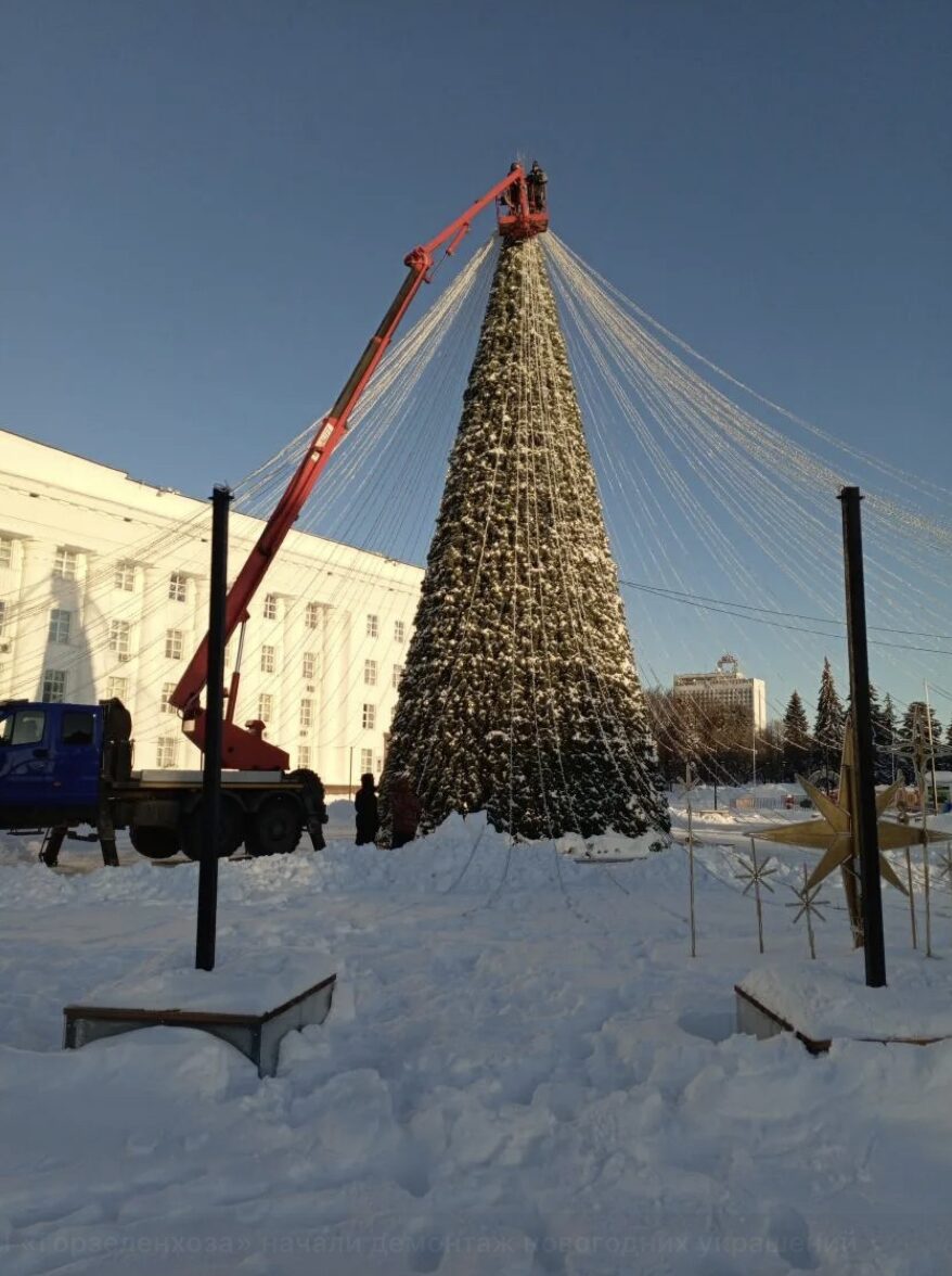 Специалисты «Горзеленхоза» начали демонтаж новогодних украшений.