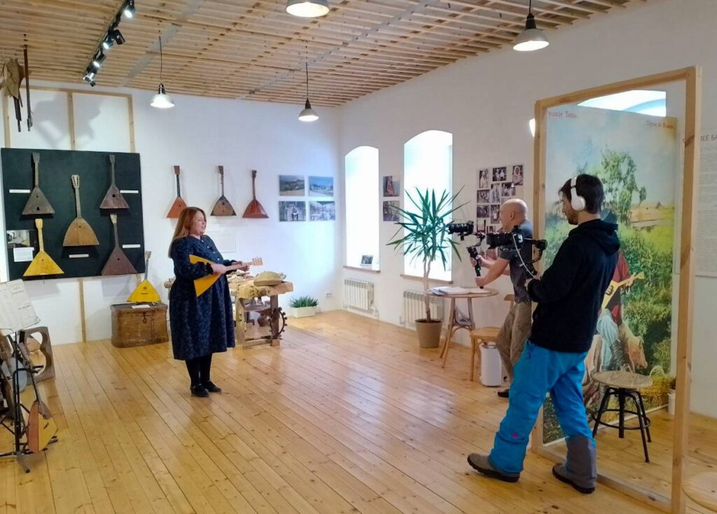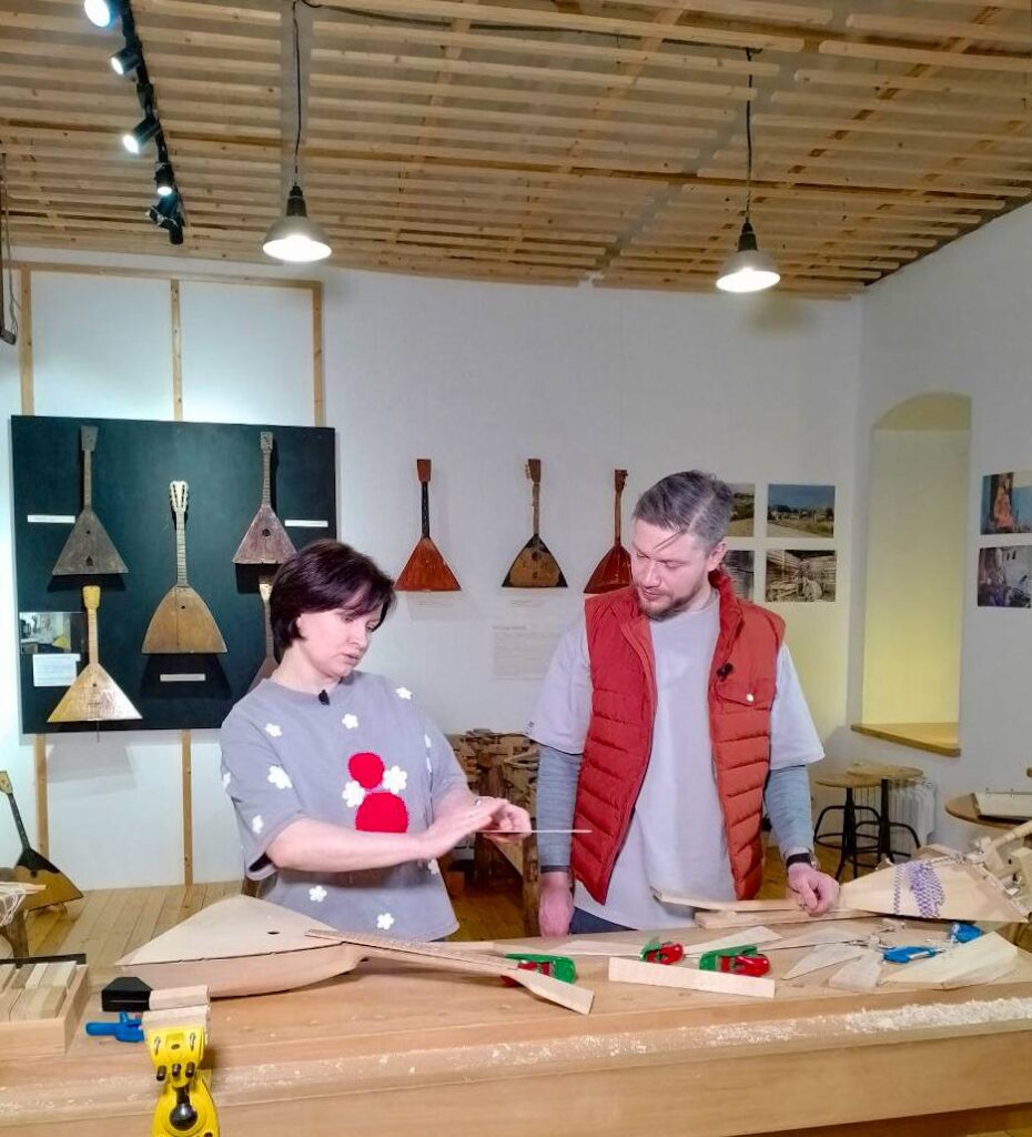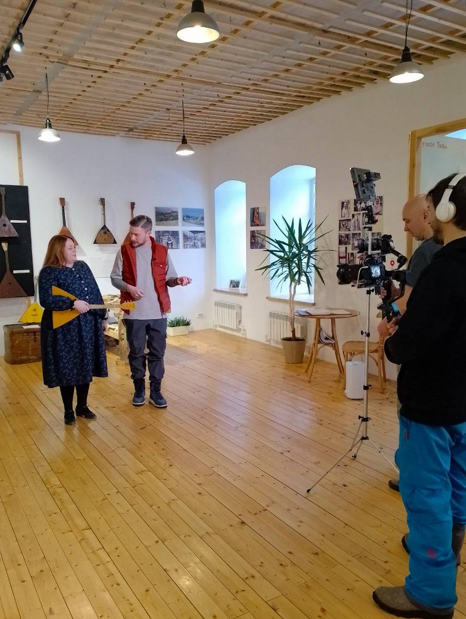 Продолжился день в Музее балалайки, где съёмочная группа узнала о местном балалаечном промысле, об истории инструмента, о традициях крестьянской игры в симбирской губернии, поиграли на ульяновских балалайках. Это место про ремесло, преемственность поколений и культурную идентичность региона.