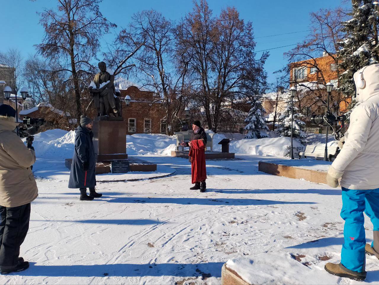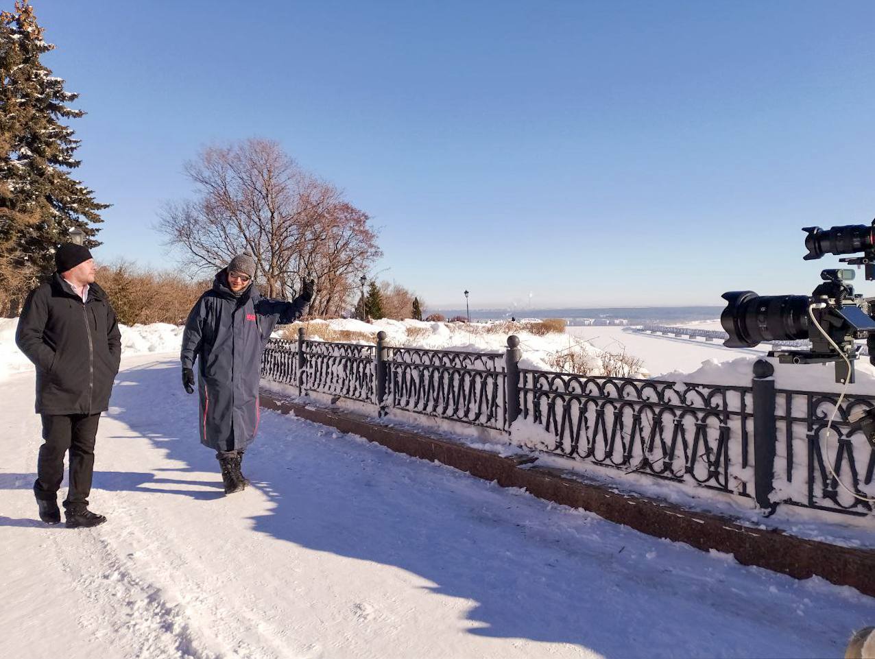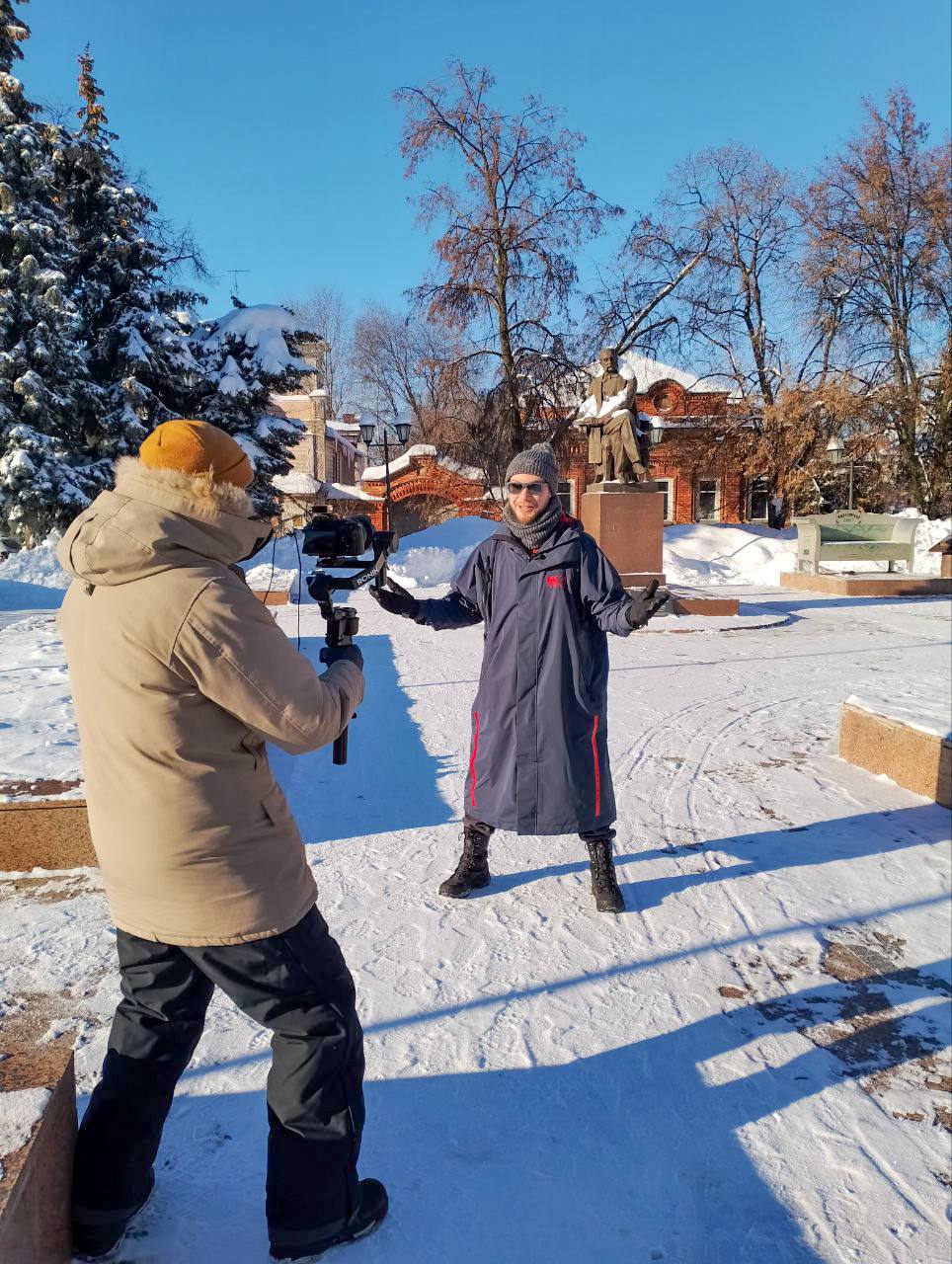 Прогулка по зимнему Ульяновску стала логичным продолжением съёмочного дня — город показал себя с другой стороны: спокойный, светлый, с особой атмосферой, в которой история и современность идут рядом.