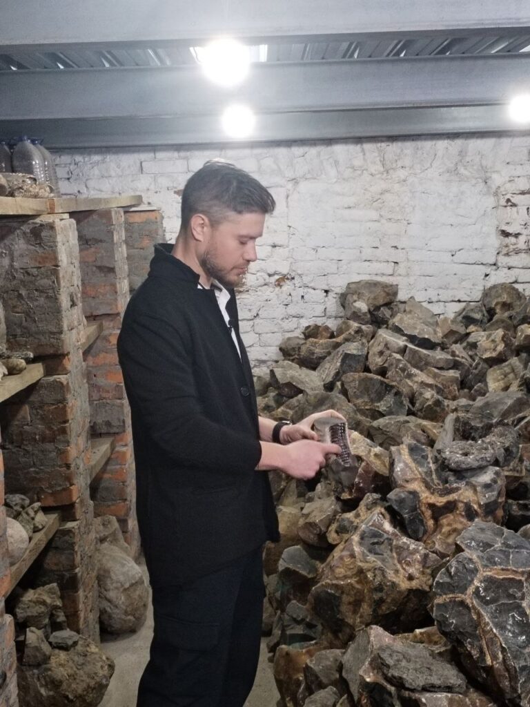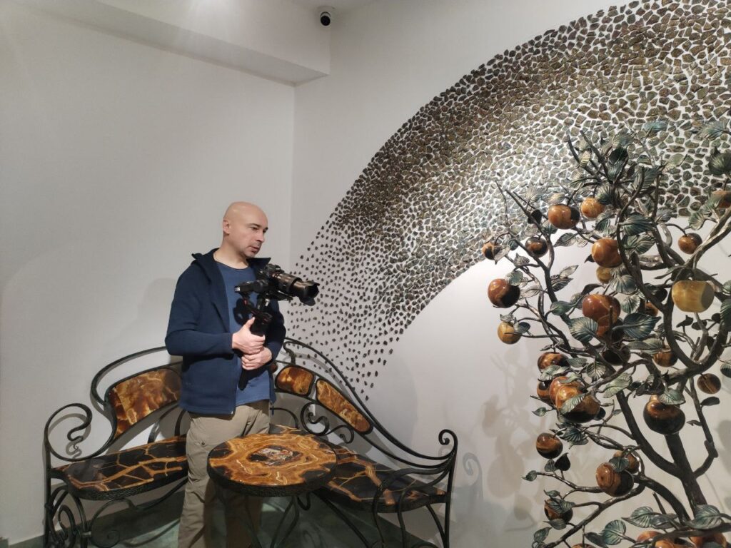 На второй день съемочная группа переместилась на действующее производство и в уникальный арт-объект народно-художественного промысла — Симбирцитовую Залу. Это интерактивная экспозиция и центр камнерезного искусства, основанная на обработке уникального ульяновского самоцвета — симбирцита, который является визитной карточкой региона и основой ремесленного производства изделий из природного камня. Экскурсия охватила историю минерала, этапы его обработки, демонстрацию готовых изделий и технологию изготовления сувениров и декоративных объектов из симбирцита. Съемочная группа также посетила производственную часть, где местные мастера демонстрировали работу с материалом и рассказывали о традициях камнерезного промысла Ульяновской области.