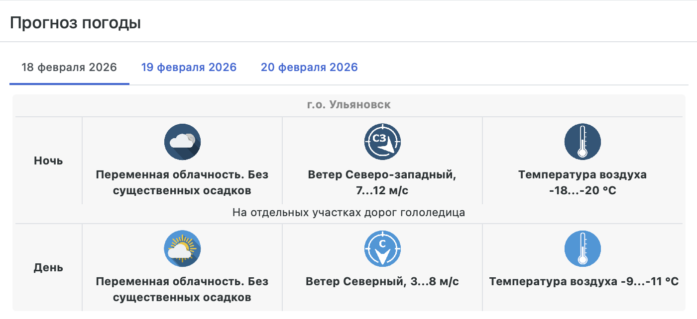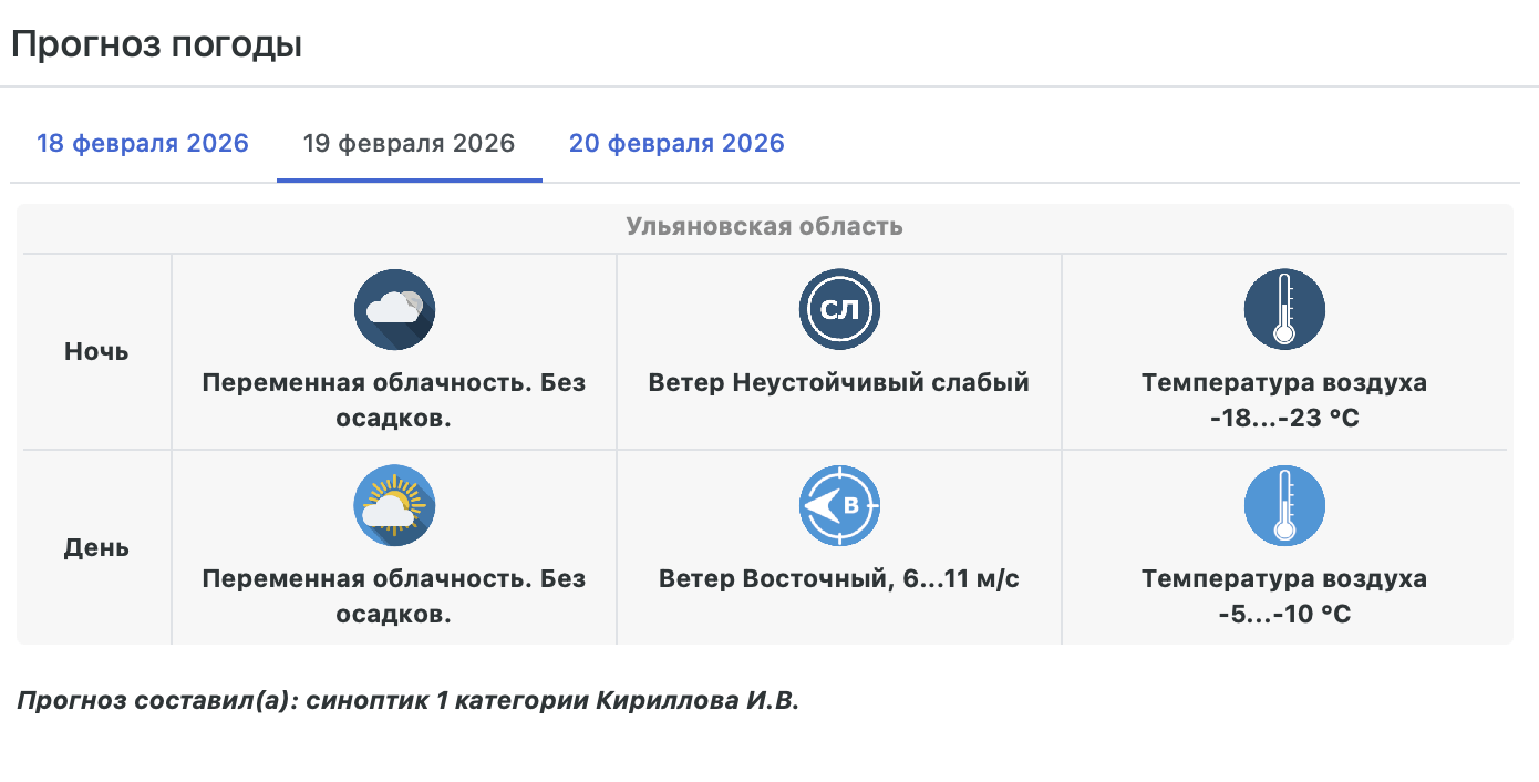 По данным гидрометцентра 18 февраля, с ростом атмосферного давления, осадки в Ульяновской области прекратятся. Ветер стихнет, температура воздуха понизится.