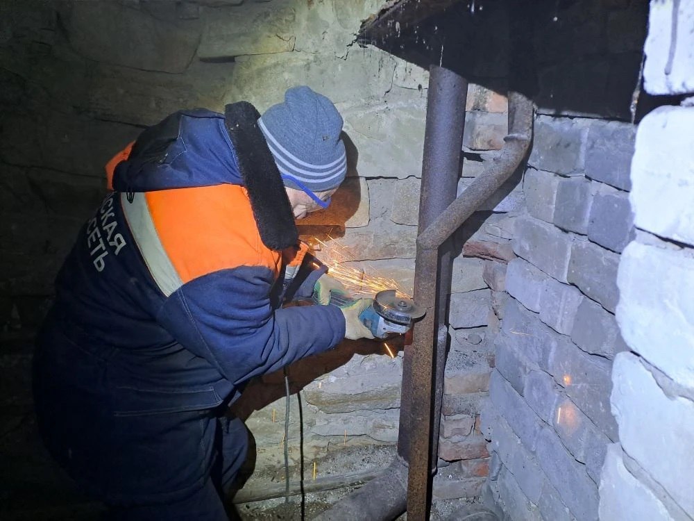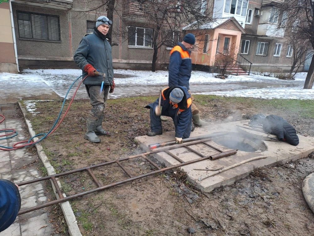Бригада УМУП «Городская теплосеть» продолжает работы по обслуживанию объектов теплоснабжения в условиях прохождения отопительного периода в подшефном регионе — Лутугинском районе Луганской Народной Республики.