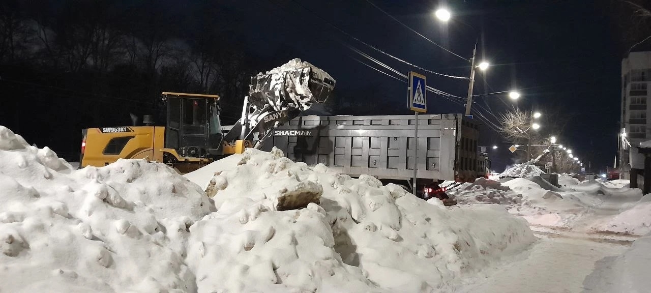 Комплексы МБУ «Дорремстрой» вывозили снег с проспектов Созидателей и Генерала Тюленева, улиц Железной Дивизии, Ленина, Инзенской, Карла Маркса, Верхнеполевой Гагарина и Московского шоссе.