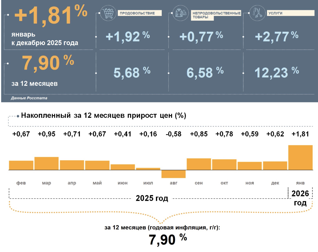 Отделение Банка России по Ульяновской области опубликовало информационно-аналитический комментарий о динамике цен в январе 2026 года. Согласно данным регулятора, годовая инфляция в регионе ускорилась и составила 7,90%, что заметно выше общероссийского показателя (6,00%).