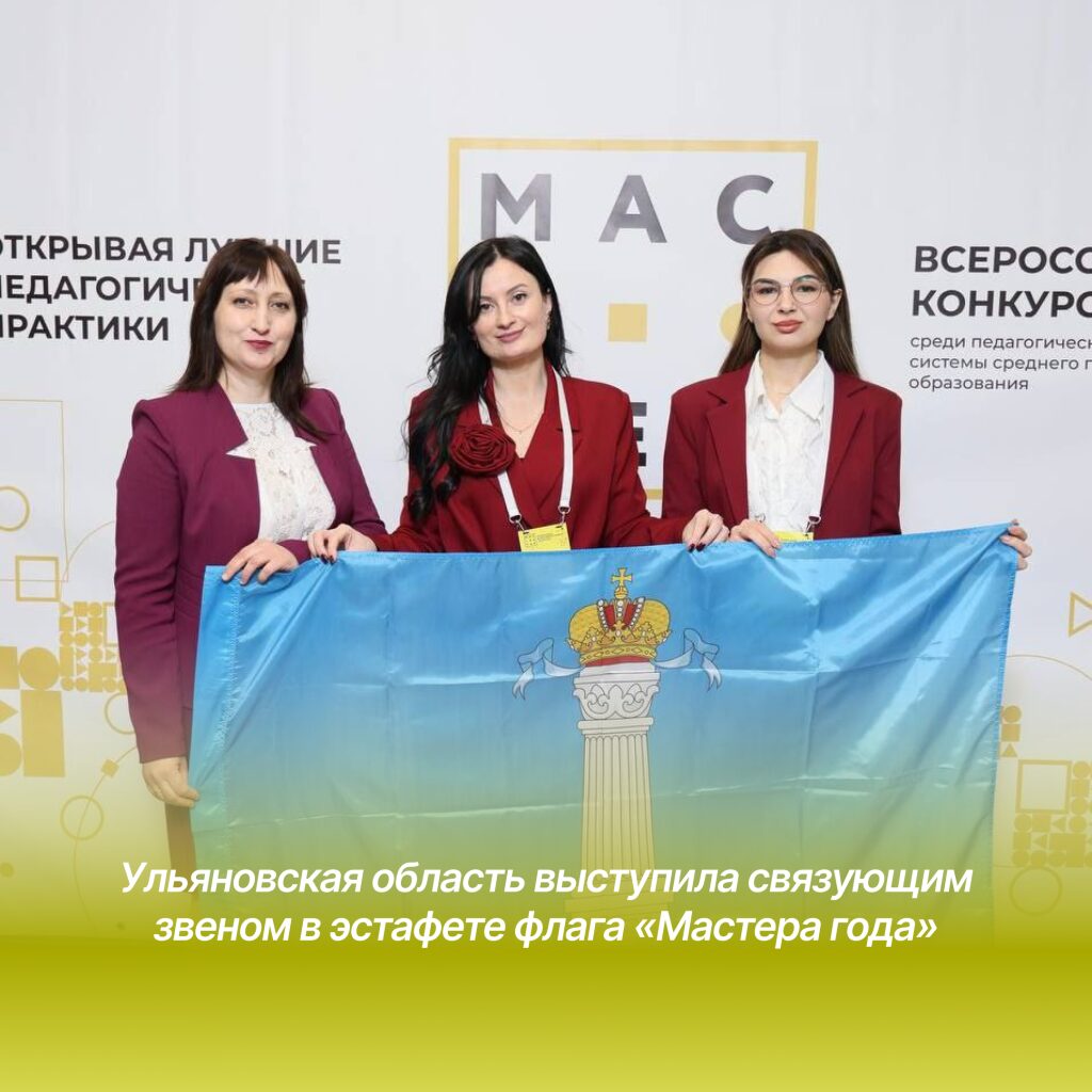 Торжественная церемония прошла в Ижевске. Первым эстафету принял Приволжский федеральный округ. В состав делегации от Ульяновской области вошли финалист конкурса «Мастер года-2025», преподаватель колледжа градостроительства и права Наталья Бойкова, преподаватель Ульяновского педагогического колледжа Оксана Кладова и специалист Ульяновского социально-педагогического колледжа Гузаль Набиулина.