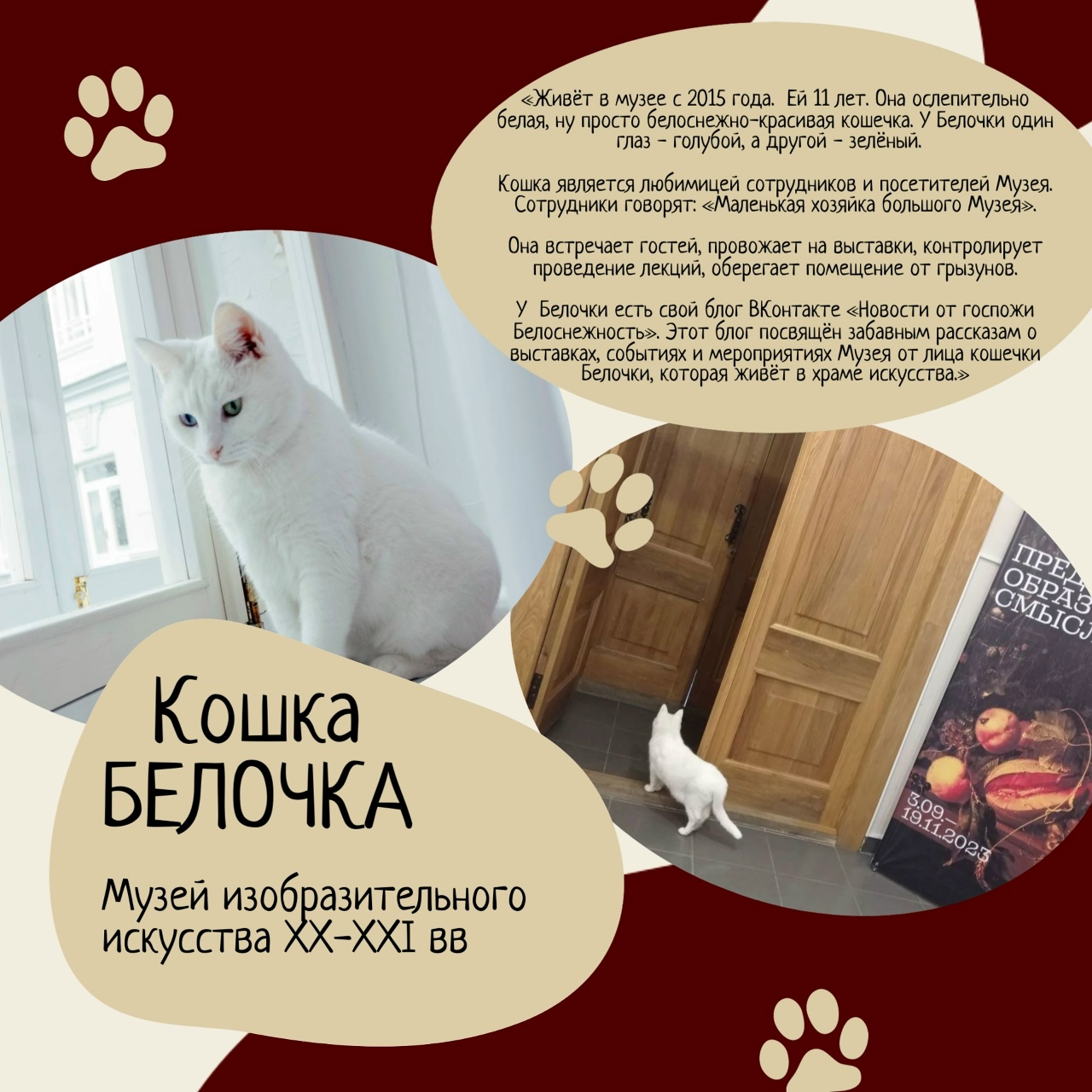 Среди усатых-полосатых специалистов есть те, кто мурлычет под музыку, кто помогает проводить лекции в музеях, а кто-то охраняет ценные экспонаты.