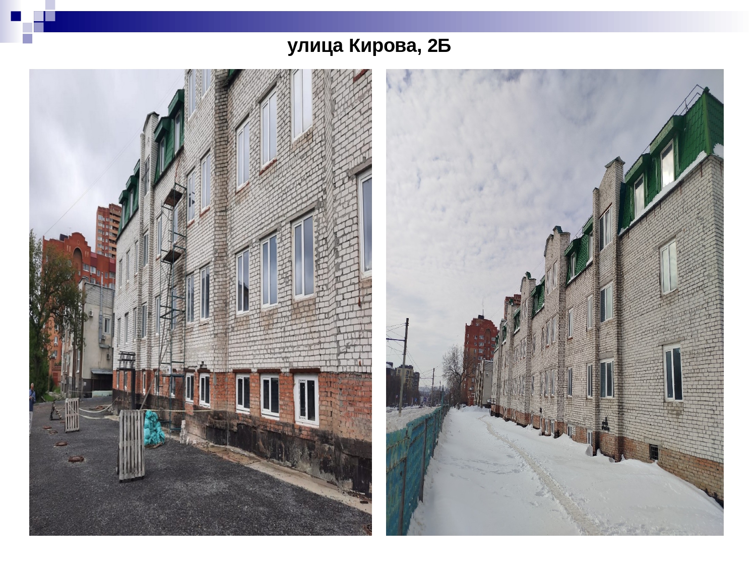 В 2023-2024 годах в адрес собственника (физического лица) здания на улице Кирова,2Б направлена рекомендация установленного образца о приведении фасада здания и прилегающей территории в нормативное состояние.