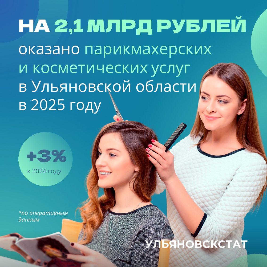 По данным Ульяновскстата, в Ульяновской области в 2025 году объём парикмахерских и косметических услуг, оказанных населению, составил 2,1 млрд рублей. По сравнению с прошлым годом этот показатель вырос на 3%.