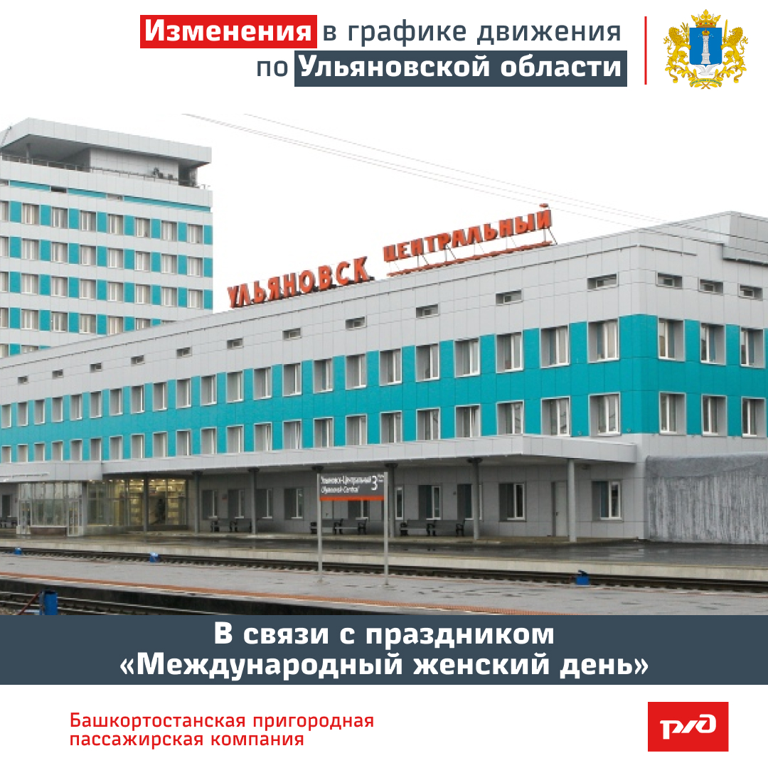 В связи с празднованием «Международного женского дня» вносятся изменения в график движения пригородных поездов по Ульяновской области, сообщили в Башкортостанской пригородной пассажирской компании.