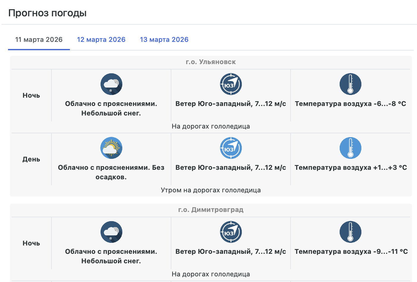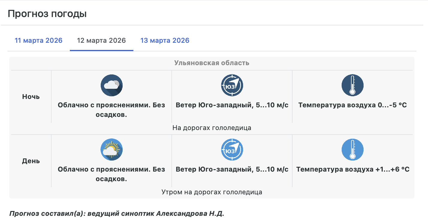 По прогнозу Гидрометцентра со среды, 11 марта, с западными потокоми на территорию Ульяновской области начнет поступать теплая воздушная масса. Температурный фон повысится до положительных значений в дневные часы. Осадки маловероятны.