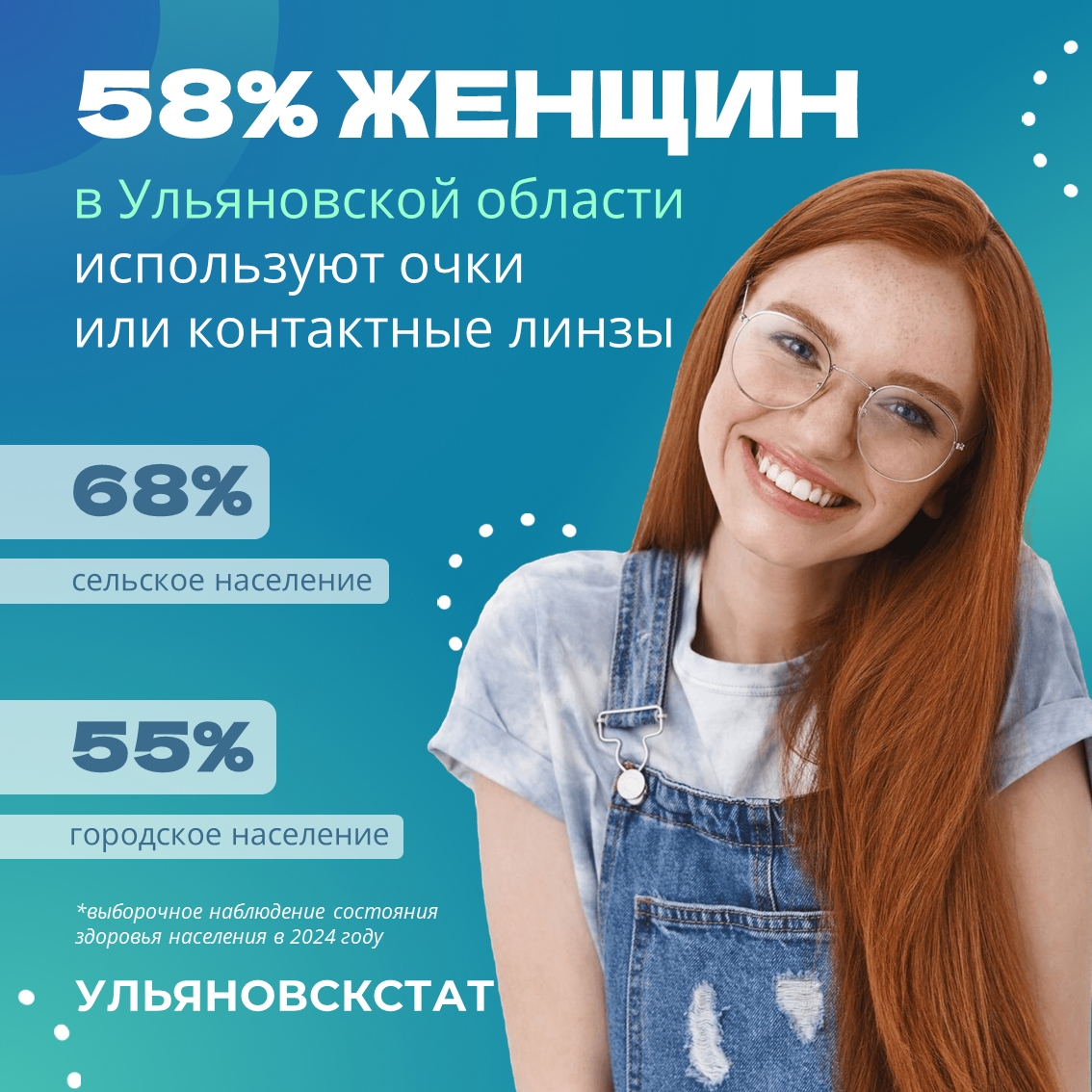 По информации Ульяновскстата, в Ульяновской области 58% представительниц слабого пола старше 15 лет носят очки или контактные линзы. Чаще ими пользуются сельские женщины – среди них показатель достигает 68%. Среди горожанок уровень ниже, он составляет 55%.