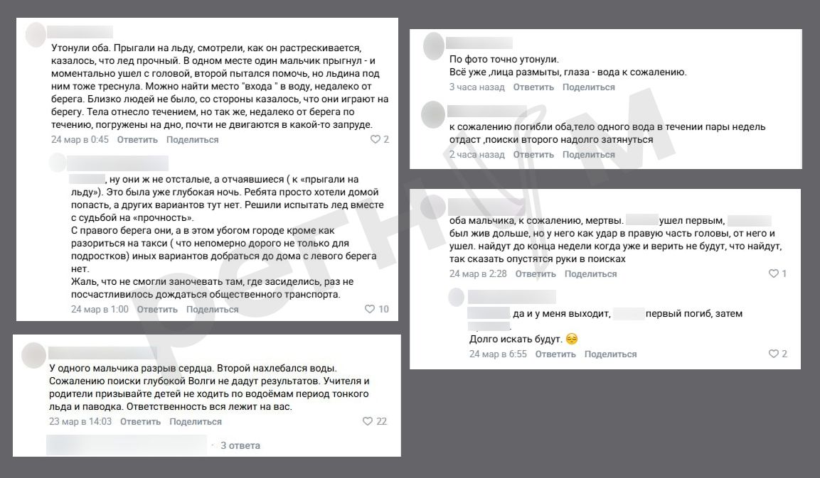 Подобное поведение вызывает резкое осуждение у жителей города и участников поиска. Горожане считают такие комментарии неэтичными и травмирующими для родственников, которые продолжают надеяться на чудо. Напомним, что по официальным данным МБУ «Управление гражданской защиты», следы подростков обрываются на льду в 300 метрах от берега возле промоин, однако поиски продолжаются в круглосуточном режиме.