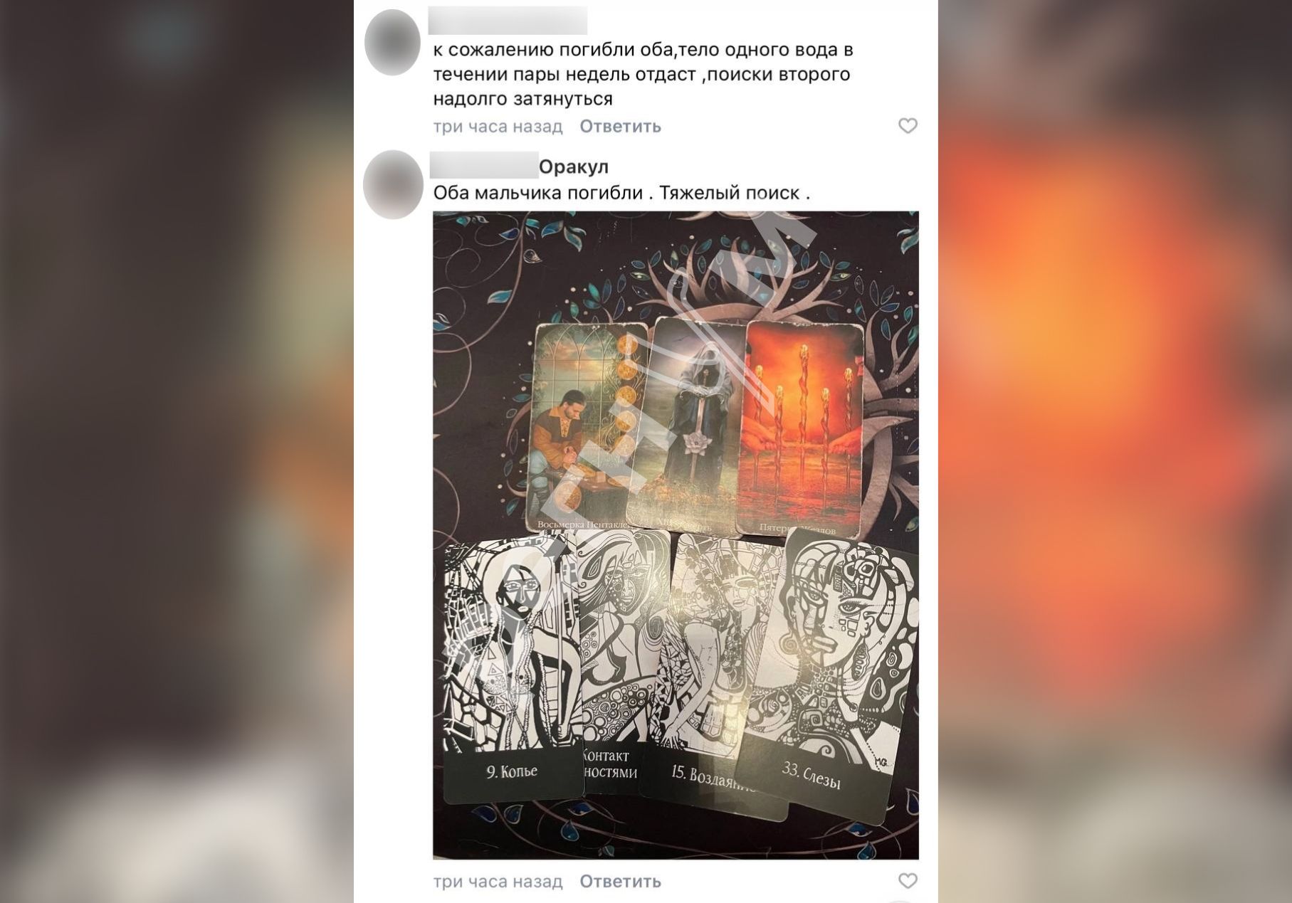 Поисковая операция на Волге в Ульяновске сопровождается не только сложными погодными условиями, но и нездоровой активностью в социальных сетях. Как сообщает ИА Регнум, региональные сообщества заполонили десятки «гадалок» и «тарологов», которые публикуют пугающие «пророчества» о судьбе двух пропавших 14-летних подростков.