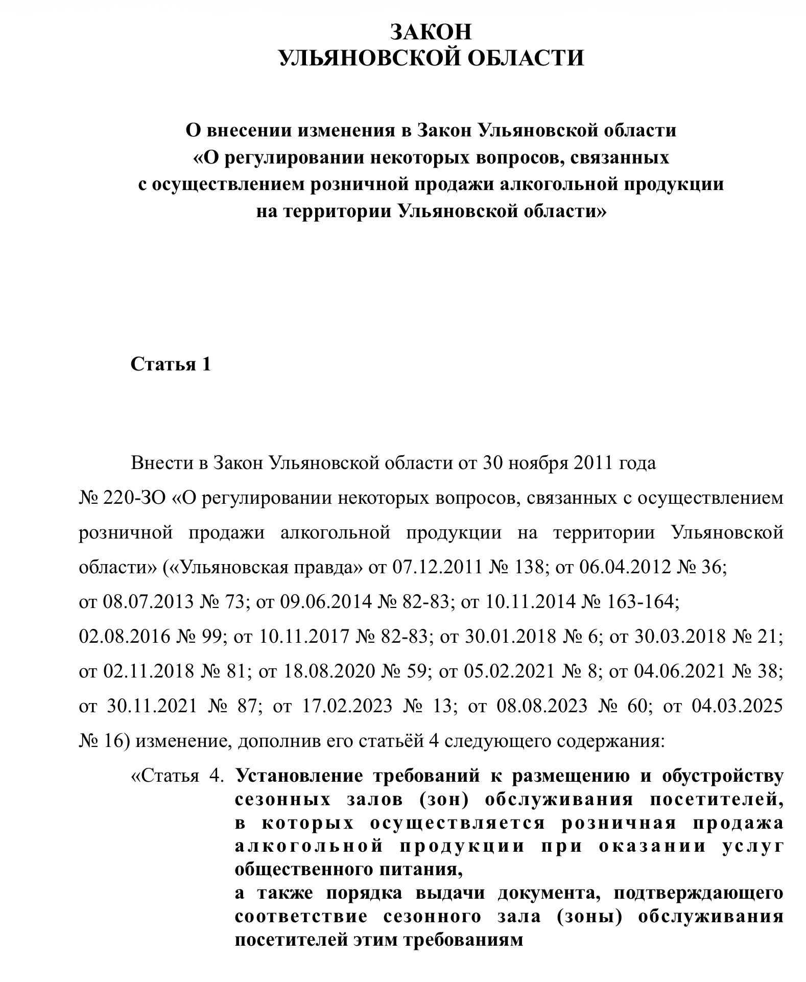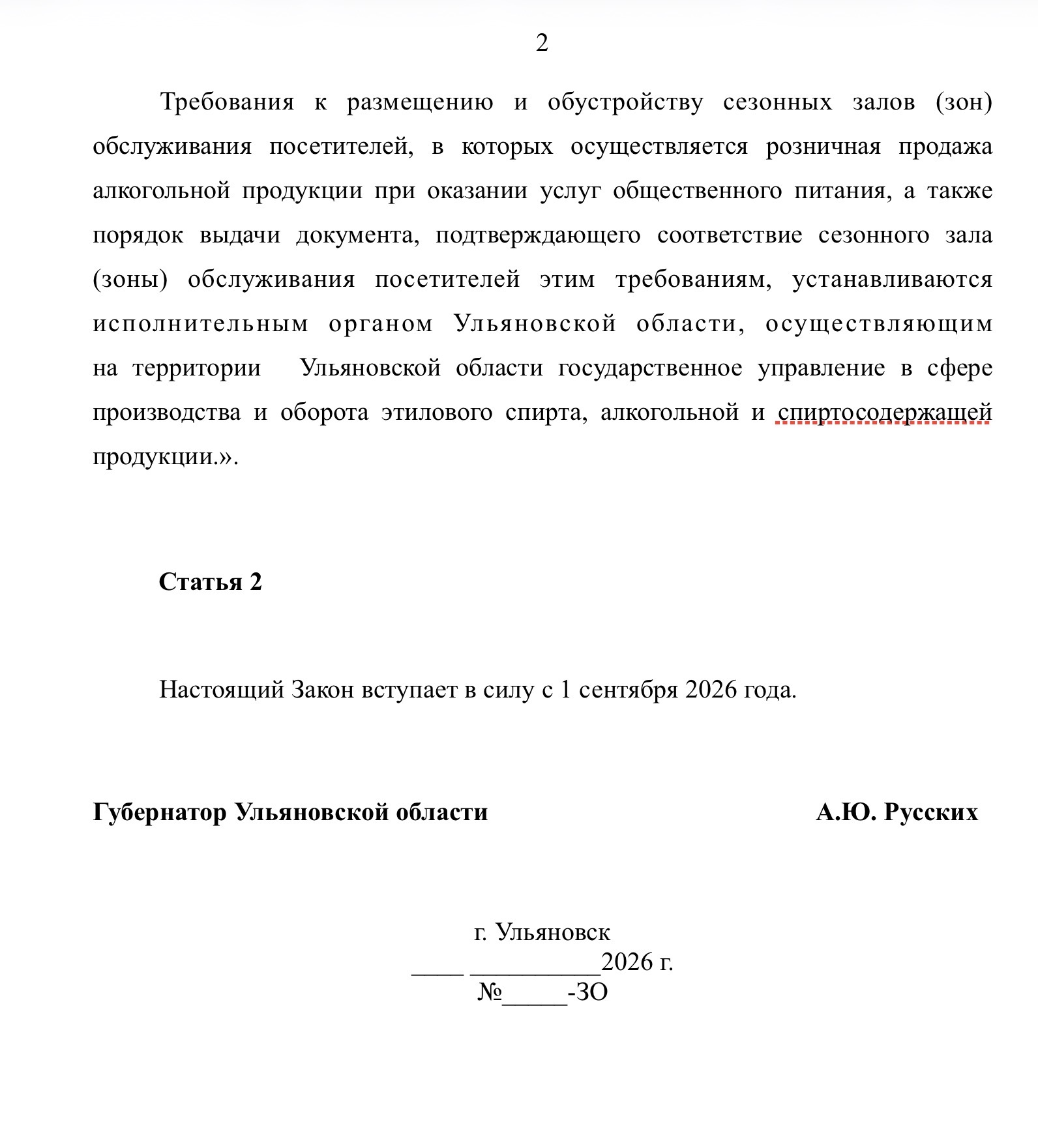 Сейчас в Федеральный закон № 171-ФЗ внесено изменение, согласно которому розничная продажа алкогольной продукции при оказании услуг общественного питания может осуществляться в сезонном зале (зоне) обслуживания посетителей при условии соблюдения требований к розничной продаже алкогольной продукции при оказании услуг общественного питания. Министерство экономического развития Ульяновской области разработало на основе этого местный законопроект.