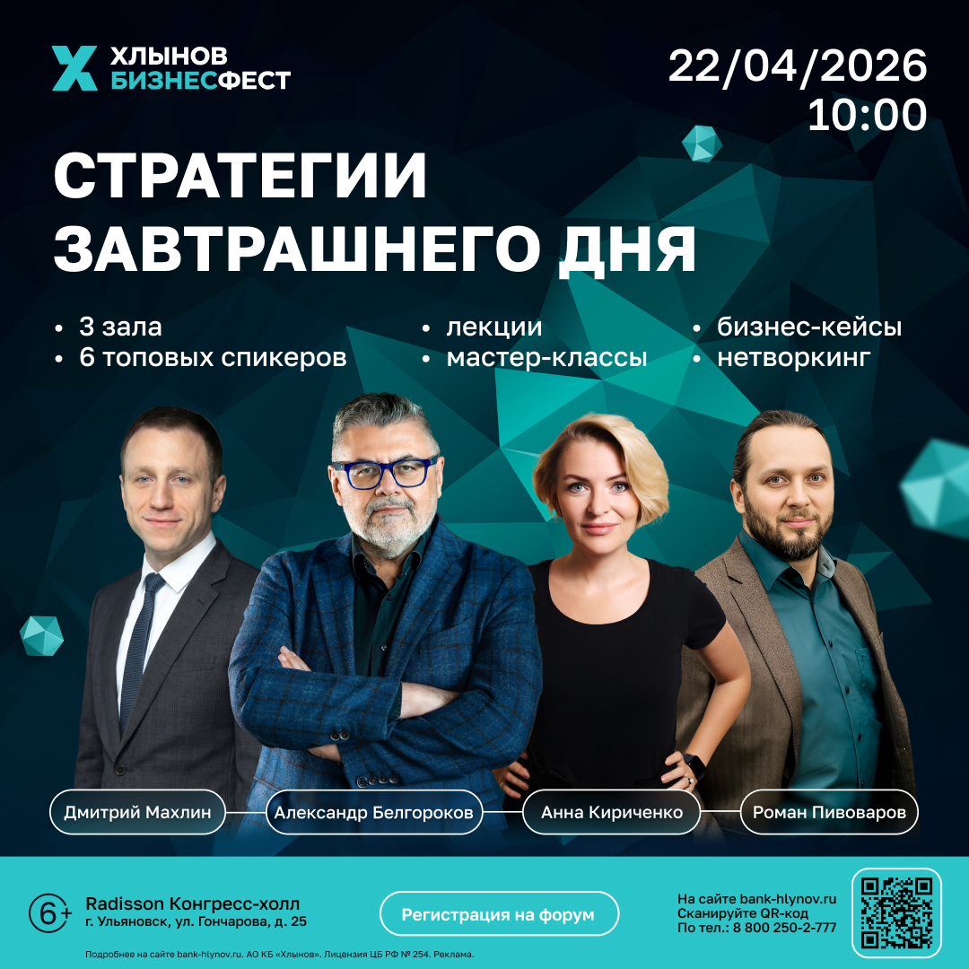 Сегодня бизнесу требуются скорость, технологии и гибкость в принятии решений. Чтобы опережать время, нужны новые идеи, эффективные инструменты и честный разговор о будущем. Стратегии завтрашнего дня – именно об этом Хлынов БизнесФест!
