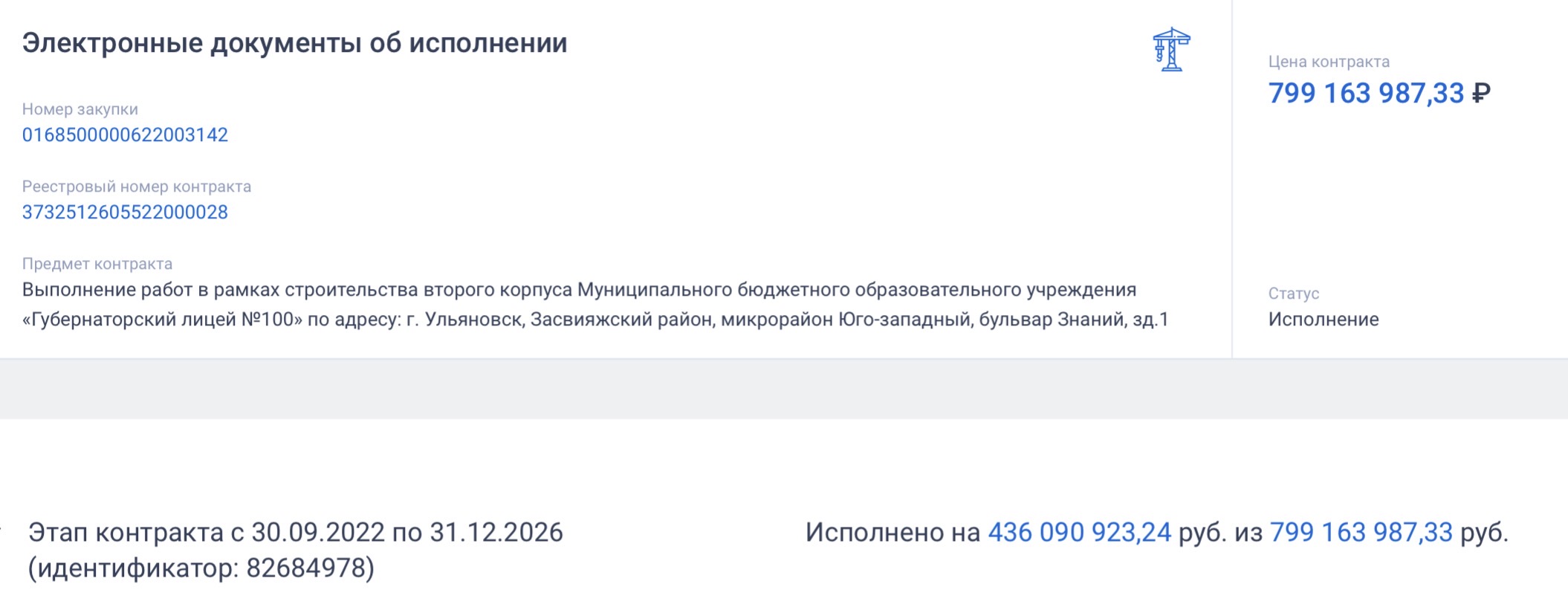 Сейчас, согласно сайту госзакупок, работы выполнены на 436 млн рублей.