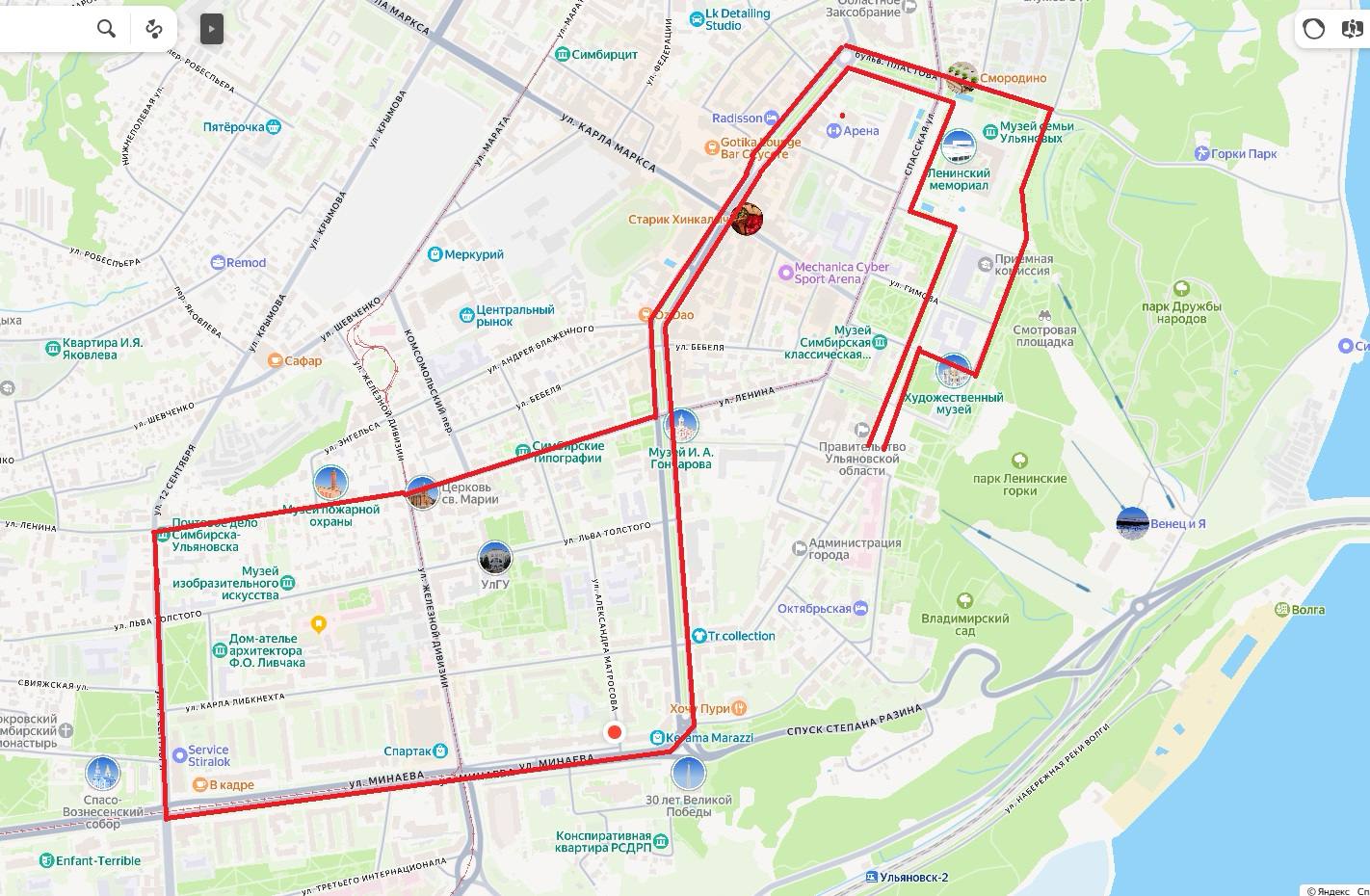 25 (М) 325 м Здание УлГПУ — Эспланада — Соборная площадь (ФИНИШ)