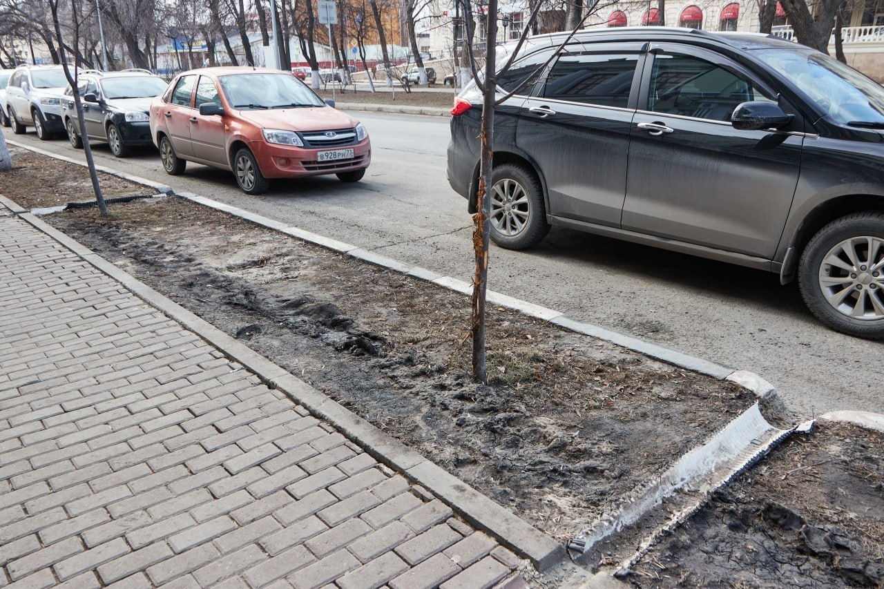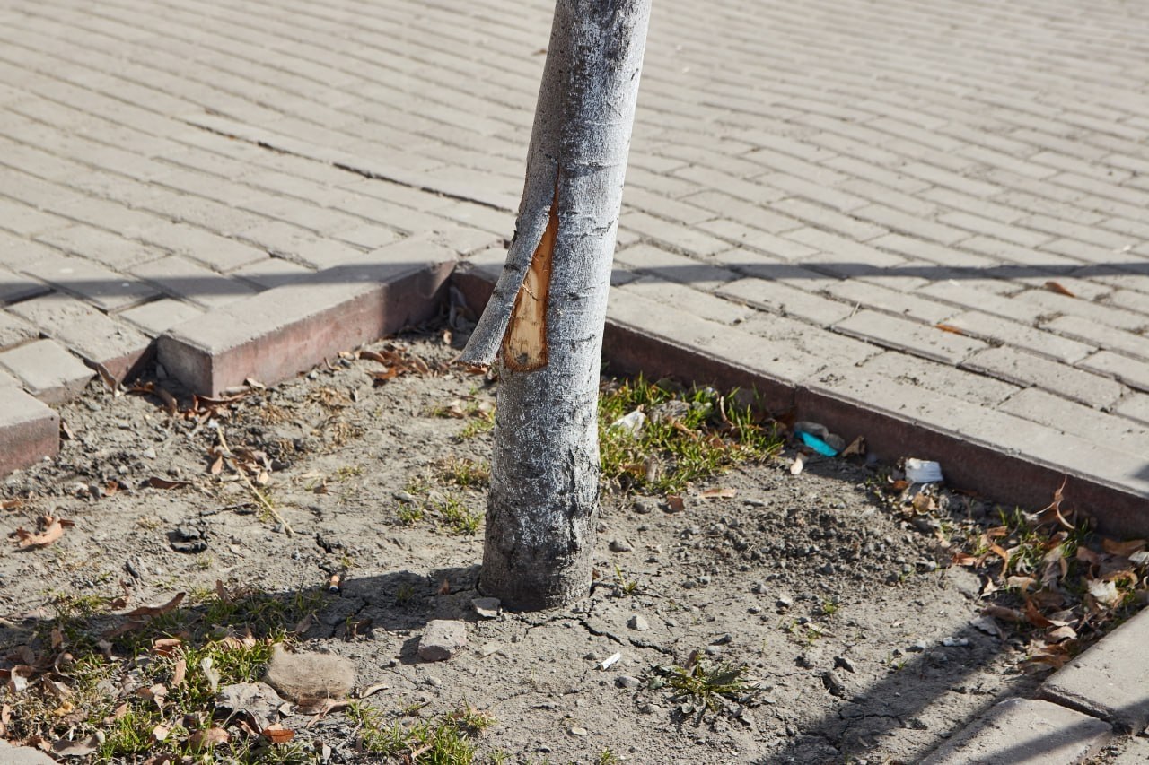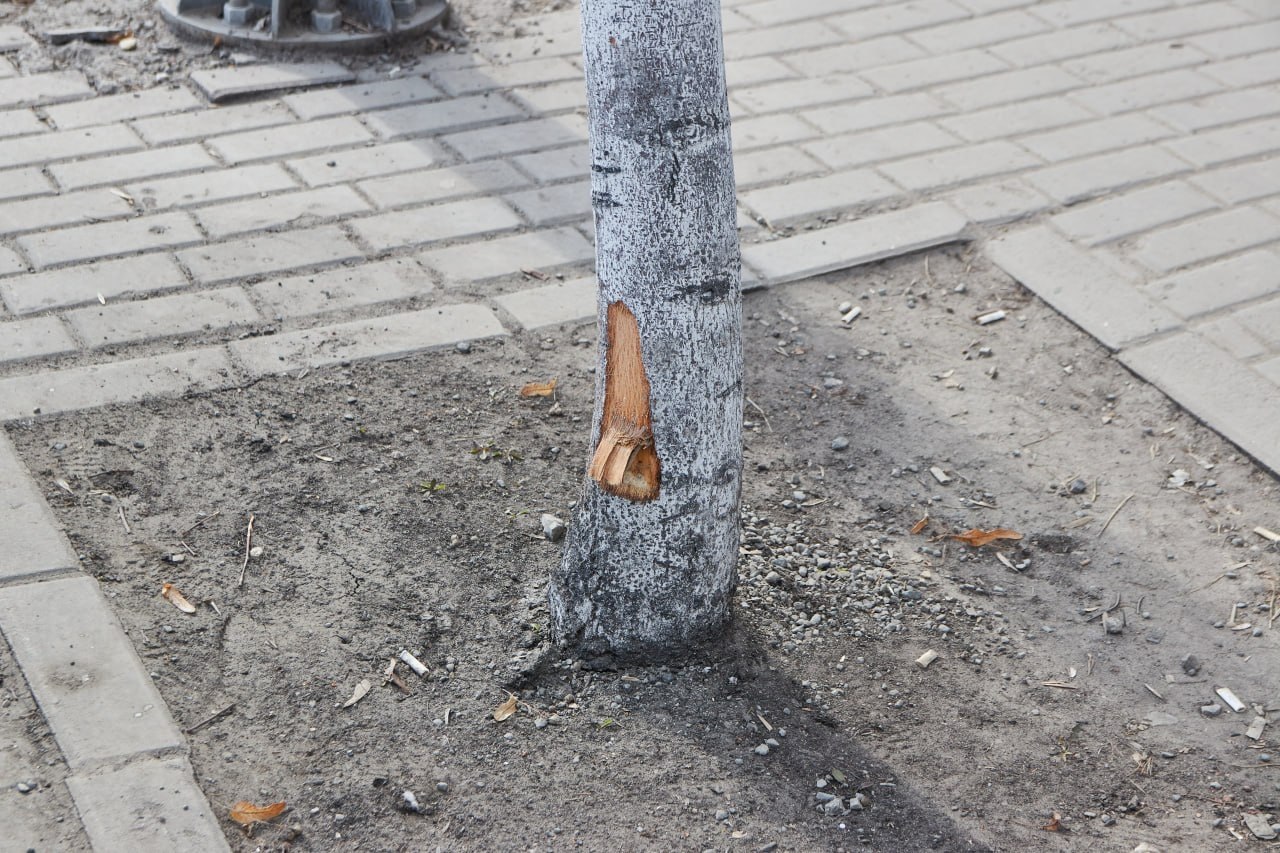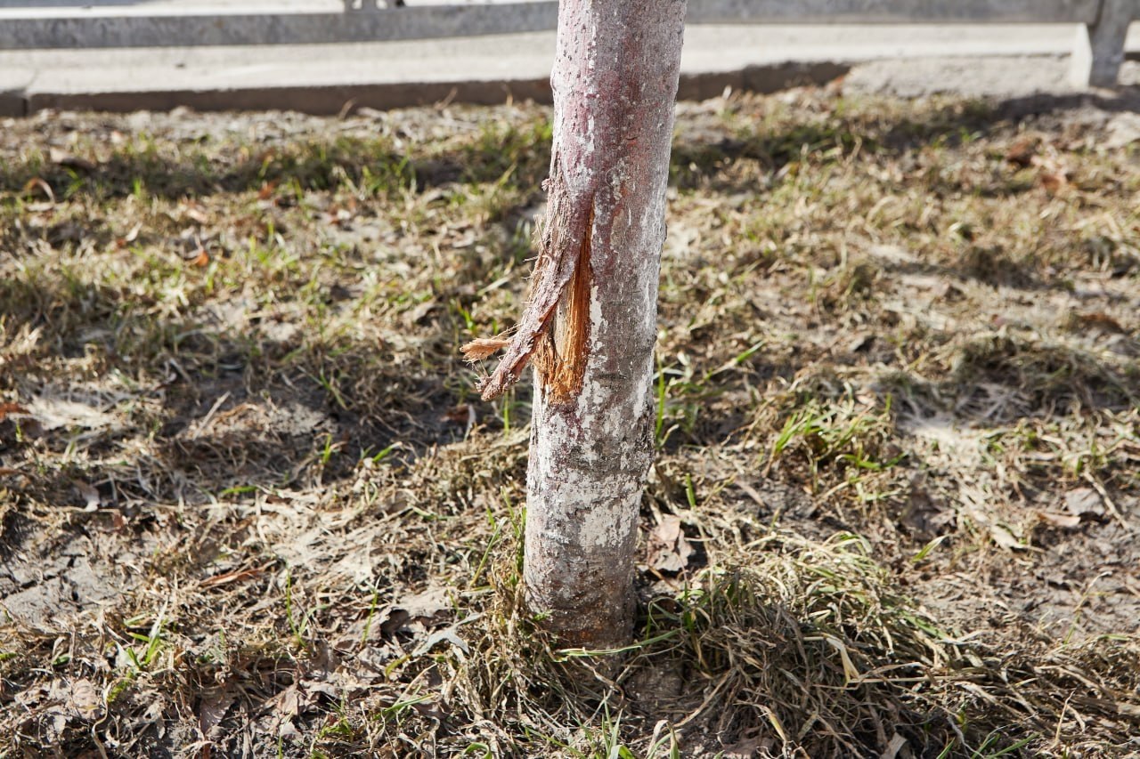 По словам автора обращения, поспешная уборка снега в марте с помощью тяжелой техники обернулась экологическим ущербом. Тракторы, работавшие на газонах, ободрали кору почти у 40 молодых лип. На кадрах видно, что повреждения стволов идут «снизу вверх», что для неокрепших деревьев в условиях загазованной магистрали зачастую становится фатальным.