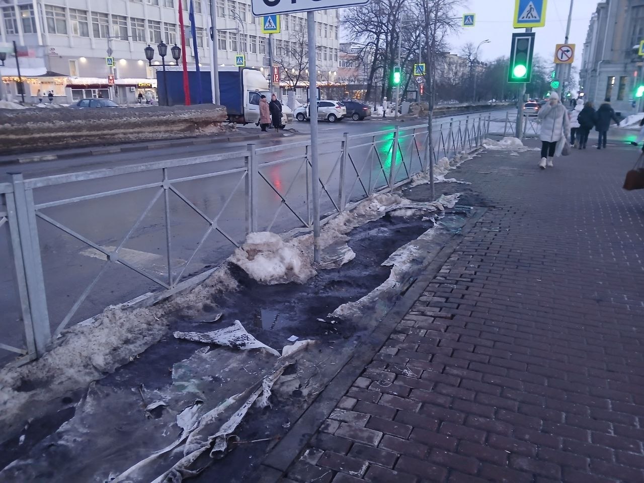 Общественники указывают на отсутствие системного подхода к защите зеленых насаждений. В то время как представители бизнеса у торговых центров (например, у ТЦ «Энтерра») самостоятельно оборачивают стволы защитными материалами, муниципальные службы ограничились лишь подвязкой к колышкам, которые не выдержали напора техники. Кроме того, колеса тракторов порвали защитный геотекстиль, уложенный для спасения почвы от реагентов, что привело к образованию грязи на тротуарах.