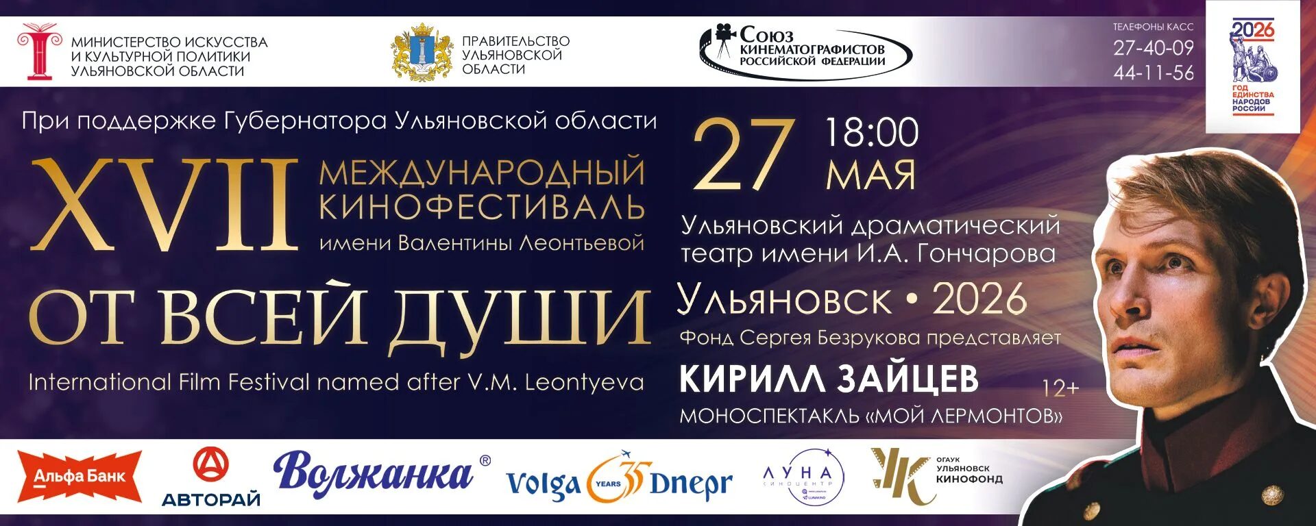 Показ моноспектакля «Мой Лермонтов» состоится 27 мая на сцене Ульяновского драматического театра в рамках XVII Международного кинофестиваля «От всей души».