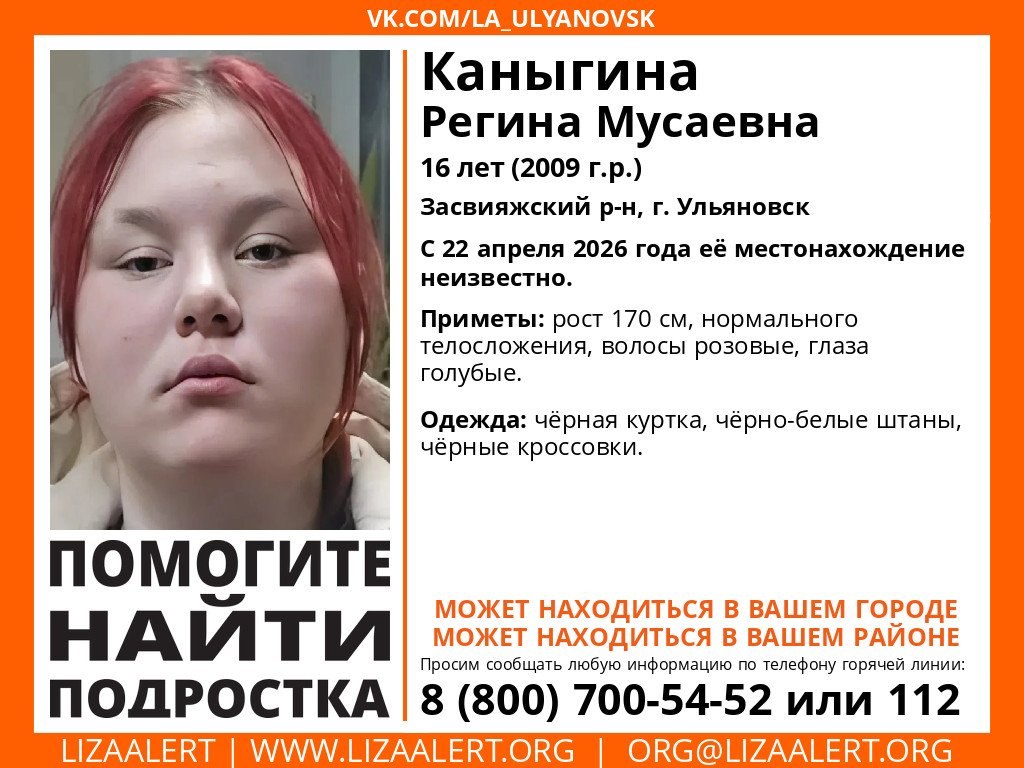 Поисковый отряд «Лиза Алерт» разыскивает 16-летнюю Регину Мусаевну Каныгину, пропавшую 22 апреля в Засвияжском районе Ульяновска.