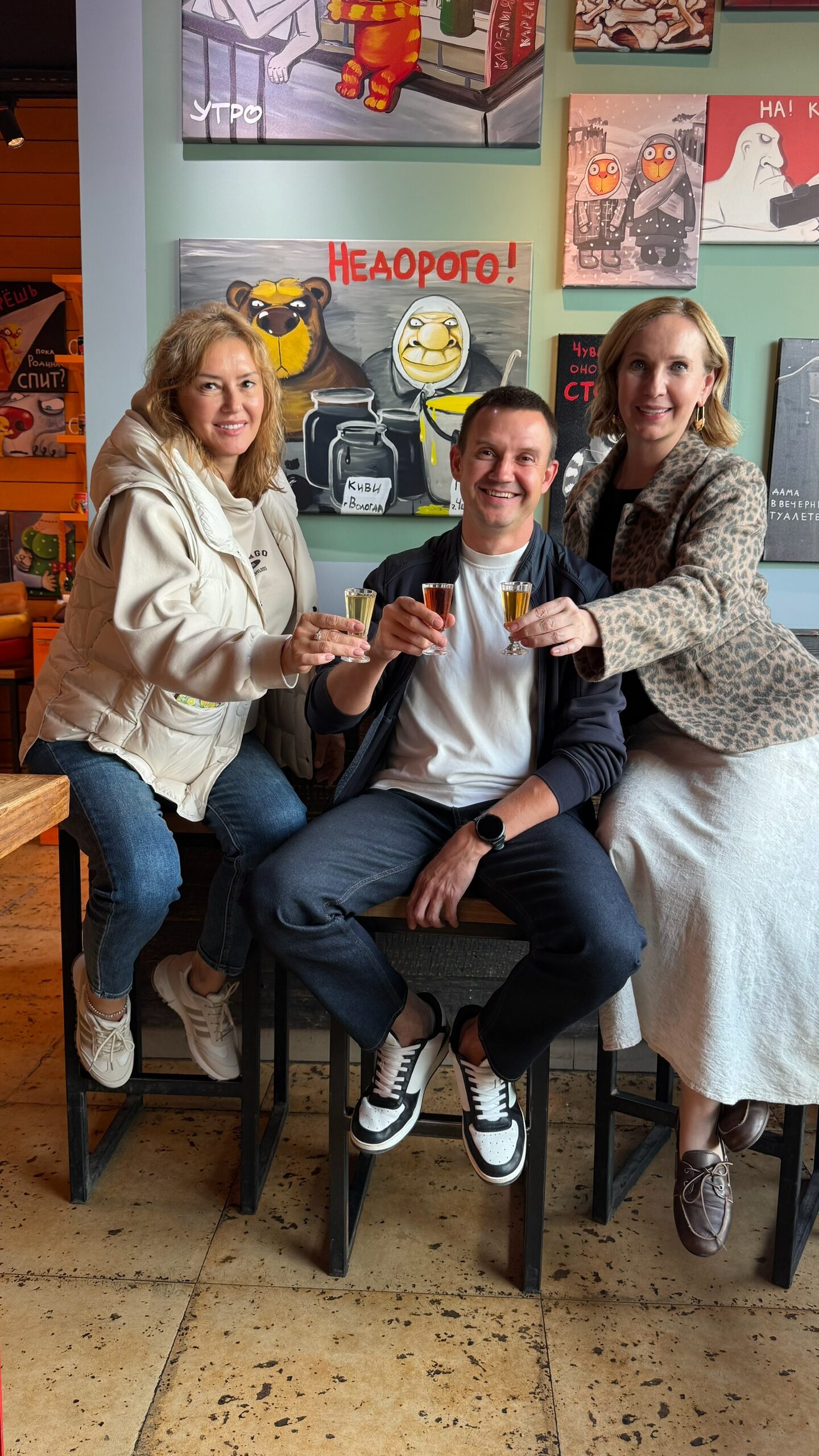 Настойки – часть культурного кода бар-музеев Васи Ложкина. Слоган заведения – «Коты, шоты, чебуреки». Это, в первую очередь, арт-пространство: картины Василия Ложкина, знаменитые оранжевые коты, ироничный взгляд на мир. И настойки – всего их 33, по одной на каждую букву русского алфавита, которые тоже являются элементом творчества.