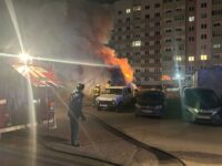 На проспекте Ливанова сгорели два строительных вагончика: фото и видео