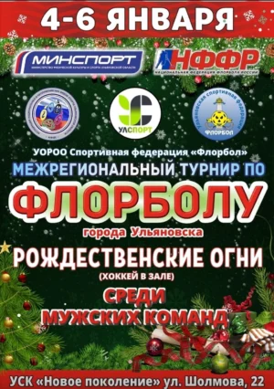 С 4 по 6 января в спортивном комплексе «Новое поколение» пройдет традиционный турнир по флорболу «Рождественские огни». Соревноваться будут команды из Ульяновска, Казани, Тольятти, Сызрани, Московской области, а также Луганской и Донецкой народных республик. |