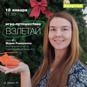 ВЗЛЕТАЙ «Взлетай!» — это игра-путешествие через прошлое и настоящее к счастливому будущему. В игре применяются телесные и дыхательные практики, которые помогут восполнить утерянные ресурсы и избавиться от груза прошлого. Это игра для тех, кто хочет двигаться вперёд и достигать успеха! Игра «Взлетай!»: — избавляет от обид, груза прошлого и иллюзий Ведущая: Мария Ромашкина — игропрактик и автор трансформационных игр. • 18 января Количество мест ограничено, участие по предварительной регистрации. Вход — свободные взносы! |