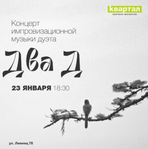 Концерт импровизационной музыки дуэта Д в а Д. Разговор двух гитар на языке, свободном от рамок и ограничений, привычных музыкальных паттернов и развлекательных элементов. Участники дуэта — > Дмитрий Лихачёв – гитара • 23 января Вход – свободные взносы! |
