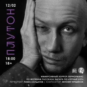 Премьера иммерсивного хоррор-перформанса «Плутон» от театра ABSURDUS / по мотивам рассказа Эдгара Аллана По «Чёрный кот». Повествование ведётся от имени алкоголика, который под действием горячительных напитков не контролирует своё поведение и впадает в припадки безумного гнева. Его первой жертвой становится домашний питомец — чёрный кот Плутон, которому он в припадке белой горячки вырезает глазное яблоко… Продолжительность: 66 минут. Режиссёр и актёр: Павел Солдатов • 12 февраля, 18.00 Вход — 300 рублей * Регистрация (всего 40 мест): https://vk.com/topic-218731504_49028270 |