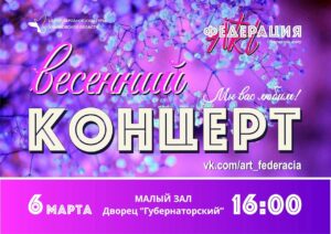 ⭕Внимание! 6 марта 2023 года в 16:00 на сцене Малого зала Центра народной культуры Ульяновской области «Дворец «Губернаторский» состоится ВЕСЕННИЙ КОНЦЕРТ коллектива творческого центра» АртФедерация» 💕, посвящённый Международному женскому дню 8 Марта 💐 🎤Творческий центр «АртФедерация» |
