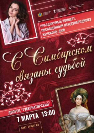 7 марта во Дворце «Губернаторский» состоится праздничный концерт, посвящённый Международному женскому дню «С Симбирском связаны судьбой». Зрители узнают о легендарных женщинах нашего региона с XIX века и до сегодняшних дней. История показана через призму судеб четырёх выдающихся дам Симбирского края прошлых веков в параллели с судьбами четырех современных женщин-наставниц в сфере науки, культуры, медицины и общественной жизни.