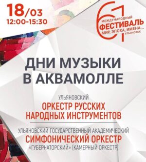 18 марта в ТРЦ АКВАМОЛЛ пройдет презентация 61-го Музыкального фестиваля «МИР, ЭПОХА, ИМЕНА…»🎼 На главной сцене ТРЦ АКВАМОЛЛ для вас выступят музыкальные коллективы Ульяновской областной филармонии: Оркестр русских народных инструментов и Симфонический оркестр🎵 Приглашаем вас насладиться прекрасной живой музыкой 18 марта с 12:00 до 15:30✨ |