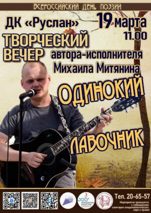 🎆»Одинокий лавочник» — творческий вечер автора — исполнителя Михаила Митянина!