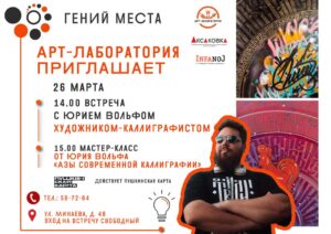 26 марта в 14:00 состоится встреча «Знакомство с современным искусством» с деятелем искусства, известным ульяновским стрит-арт художником, каллиграфом Юрием Вольфом.