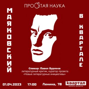 1 апреля после долгого перерыва состоится новый лекторий от Простой науки. Биографическая лекция «Маяковский» будет посвящена трем последним годам Владимира Владимировича.