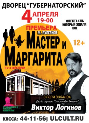 4 апреля на сцене Дворца «Губернаторский» состоится спектакль «Мастер и Маргарита». 4 апреля на сцене Дворца «Губернаторский» состоится спектакль «Мастер и Маргарита». О чем этот роман? Каждый выбирает свое. О любви? Безусловно! О тяжелых испытаниях? Да. О предательстве? Несомненно. Каждый выбирает свое. Также и наш спектакль.