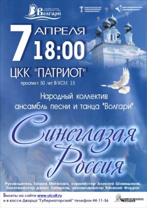 7 апреля в ЦКК «Патриот» состоится концерт «Синеглазая Россия» народного коллектива ансамбля песни и танца «Волгари».
