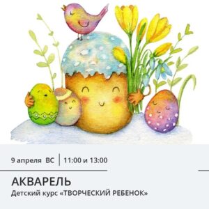 Занятие детского курса «Творческий ребенок», мастер-класс «Пасхальная картина акварелью»