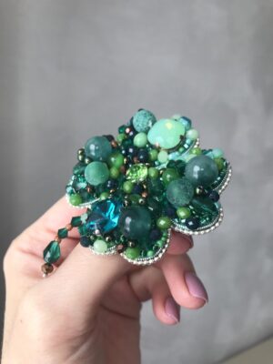 Мастер-класс по вышивке броши «Клевер» из бусин натурального камня и кристаллов