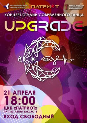 21 апреля в 18:00 в Центре «Патриот» пройдет концерт хореографического коллектива студии современного танца «UpGrade». Большой сольный концерт — откровение, в котором яркие и глубокие номера, очень «личные», как чувства, как высказывания, рассказывают о поиске смыслов, о человеческих взаимоотношениях, о внутреннем мире и, конечно, любви.
