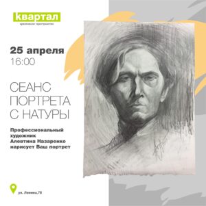 ПОРТРЕТ С НАТУРЫ Профессиональный художник Алевтина Назаренко нарисует ваш портрет. Вы можете стать моделью для художницы и забрать свой портрет за стоимость, которую определите сами. Модели для портрета: не больше трёх человек. Скорее регистрируйтесь у мастера. • 25 апреля Вход — свободные взносы! |