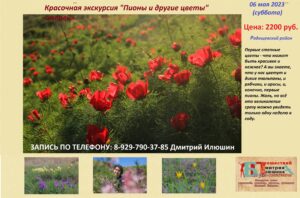 Бюро Путешествий Дмитрия Илюшина приглашает на экскурсию «Пионы и другие цветы». Первые степные цветы — что может быть красивее и нежнее. А вы знаете, что у нас цветут и дикие тюльпаны, и рябчики, и ирисы, и, конечно, первые пионы. Жаль, но всё это великолепие сразу можно увидеть только одну неделю в году. Стоимость 2200 рублей. Особые требования и условия для прохождения маршрута: