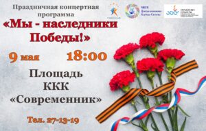 Приглашаем вас 9 мая в 18:00 на праздничный концерт «Мы наследники Победы!», посвящённый 78 годовщине Победы в ВОВ.