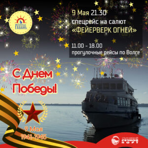 Рейс по Куйбышевскому водохранилищу проводится в праздничные дни: День Победы, День России, День молодежи, День города. Стоимость билета на спецрейс «Фейерверк огней»: На вечерний спецрейс «Фейерверк огней» билеты рекомендуется забронировать заранее по номеру телефона +7 (8422) 42-98-00. |