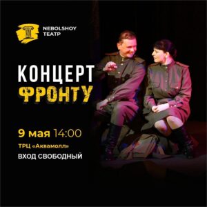 9 мая в 14:00 приглашаем всех на спектакль «Концерт фронту» от NEBOLSHOY ТЕАТР, который пройдет на сцене в ТРЦ АКВАМОЛЛ. Спектакль «Концерт фронту» расскажет о фронтовых концертных бригадах, о выдающихся артистах, которые поддерживали дух солдат, выступая на передовой, и, несмотря на все трудности, дарили хорошее настроение. За годы Великой Отечественной войны артисты провели для советских воинов 1 350 000 спектаклей, концертов, творческих встреч — не было ни одной части, где бы не побывали фронтовые театры и бригады. Основой для «Концерта фронту» послужили архивные документы и воспоминания самих деятелей искусства, принимавших участие во фронтовых бригадах. Старшее поколение с удовольствием вспомнит, а молодое поколение узнает имена Клавдии Шульженко, Лидии Руслановов, Николая Крючкова, Леонида Утесова и других выдающихся артистов времен Великой Отечественной войны. Режиссер — заслуженный артист РФ Эдуард Терехов. Вход свободный! |