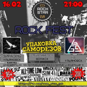 Рок фестиваль. Выступают группы Ульяновска и специальный гость из Волжска «УПАКОВКА САМОРЕЗОВ»